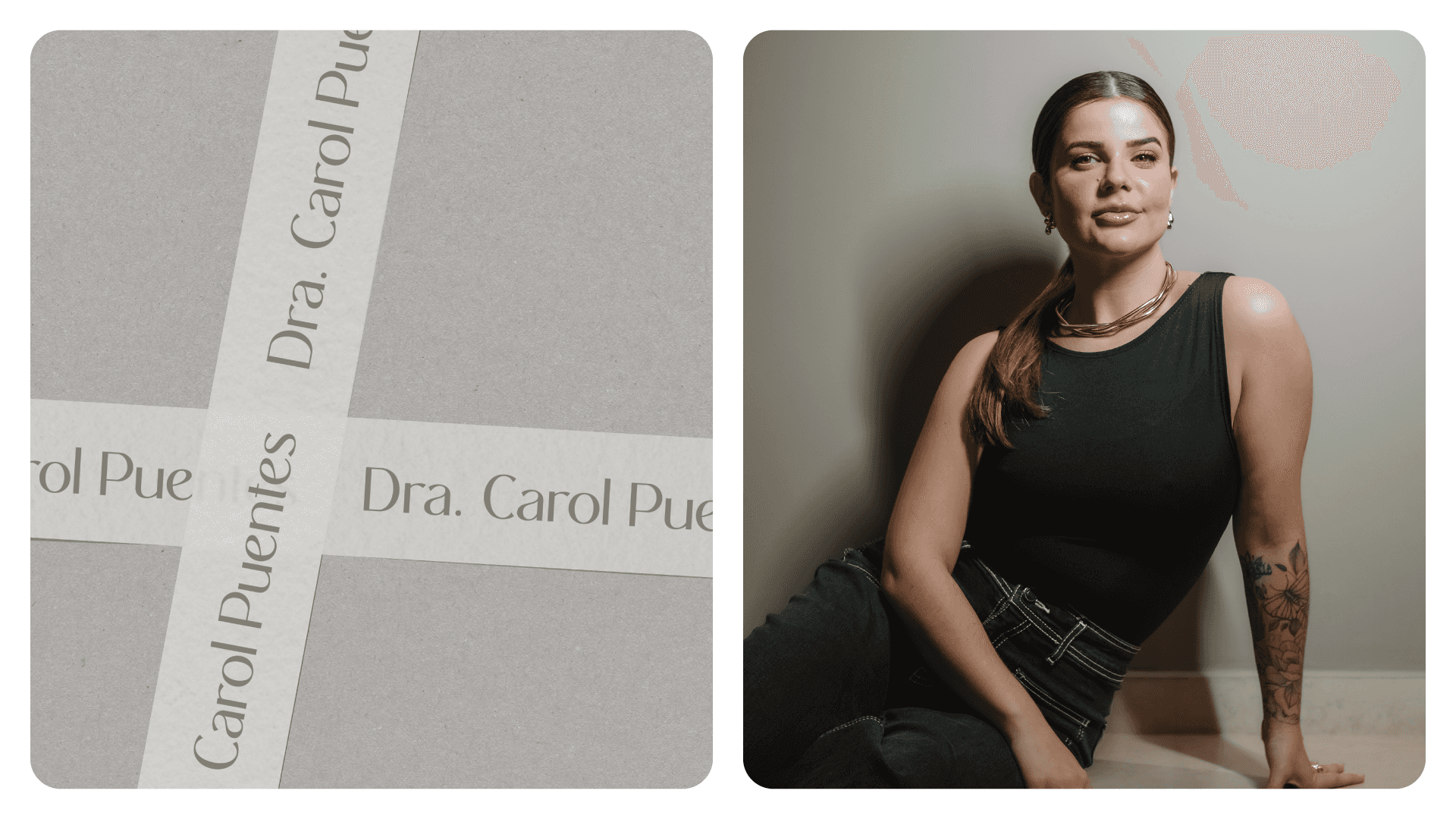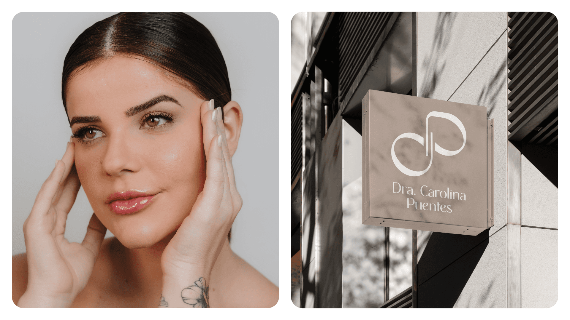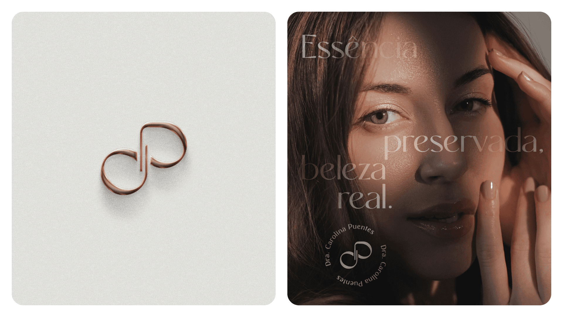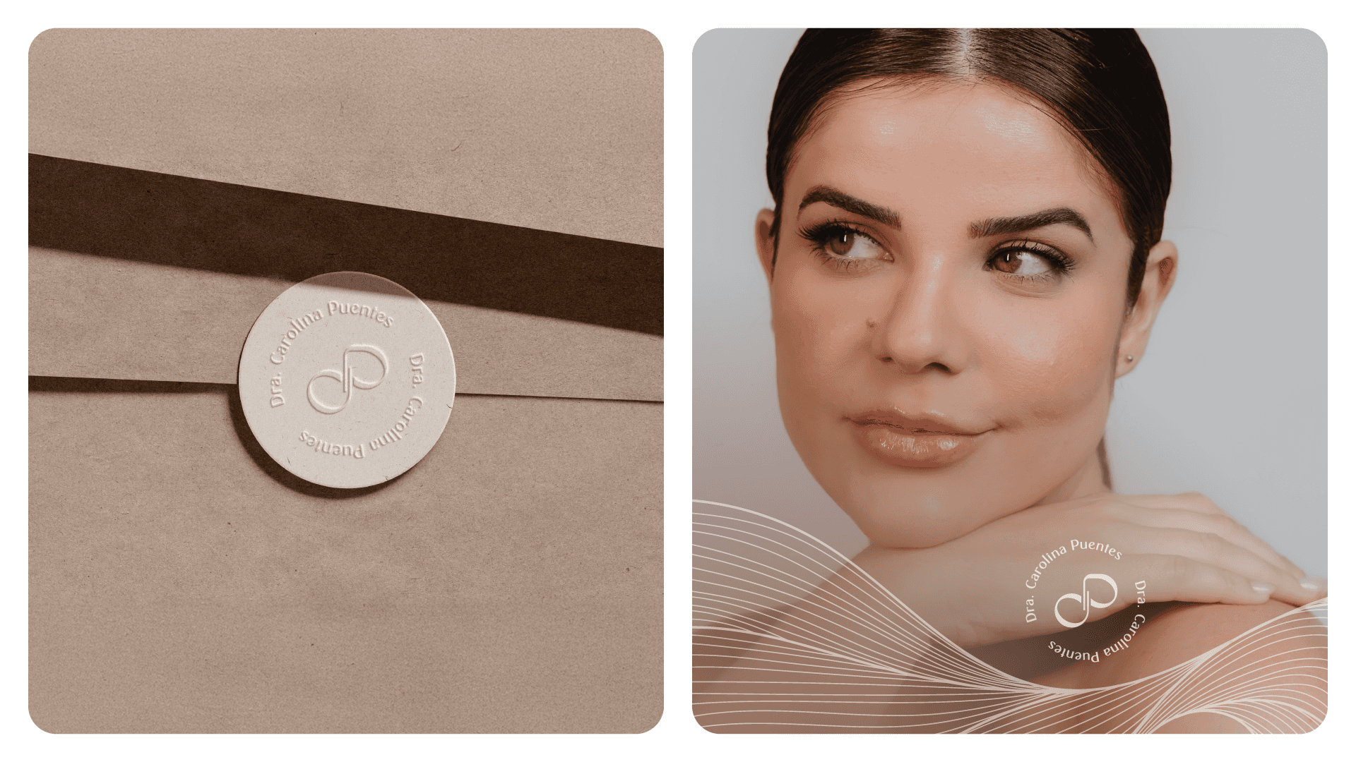 Dr. Carolina Puentes' visual identity stems from the balance between confidence and transformation. Inspired by her work that goes beyond aesthetics, the brand visually translates the care, excellence, and empathy she offers each patient. The symbol represents movement and acceptance, reflecting her holistic and human approach. With elegant lines and a sophisticated visual system, the identity reinforces the doctor's authority in her field, while inviting her patients to experience a light, safe, and inspiring process of change.