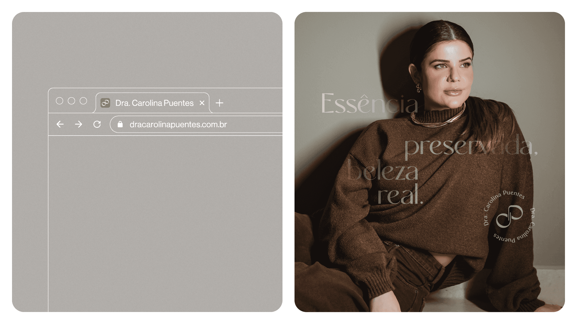 Dr. Carolina Puentes is a dental surgeon specializing in orofacial and body harmonization. Her brand was created to convey confidence, empathy, and excellence, valuing a human and transformative approach in every aspect of care. Working with a technical yet sensitive eye, Carolina seeks to promote self-esteem and well-being naturally and ethically, believing that true beauty is that which respects the essence of each person. The visual identity was built to reflect these pillars, with a light, sophisticated, and welcoming aesthetic. From the logo to the communication, every detail translates her philosophy: to enhance individual beauty with safety, precision, and empathy.
