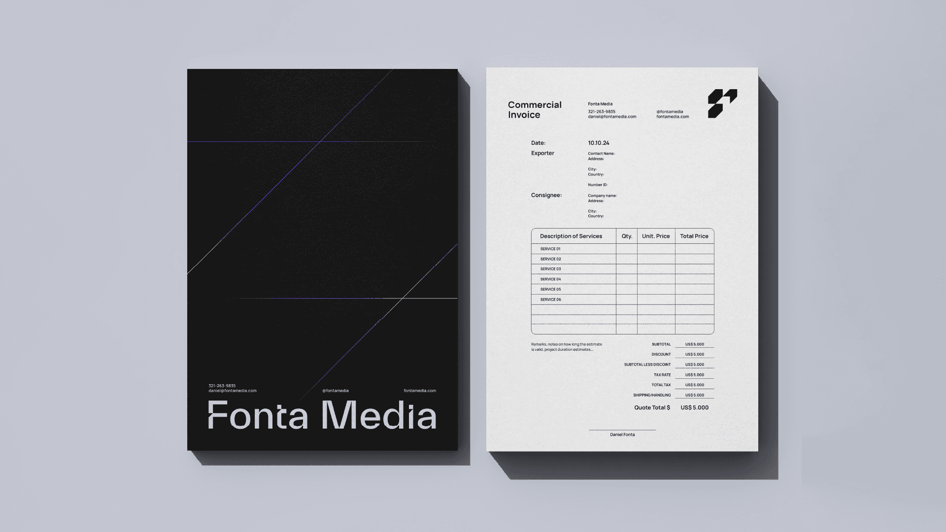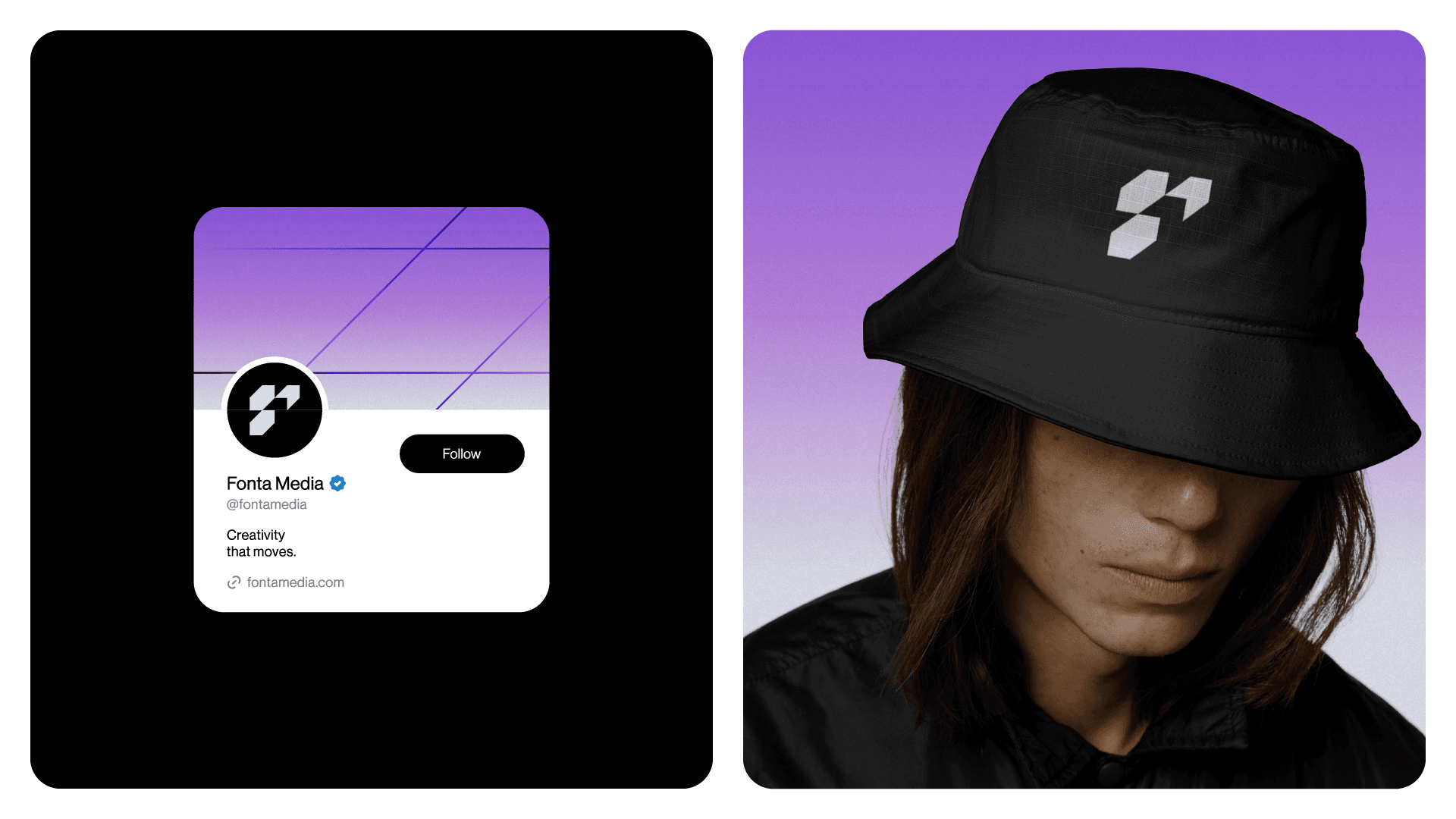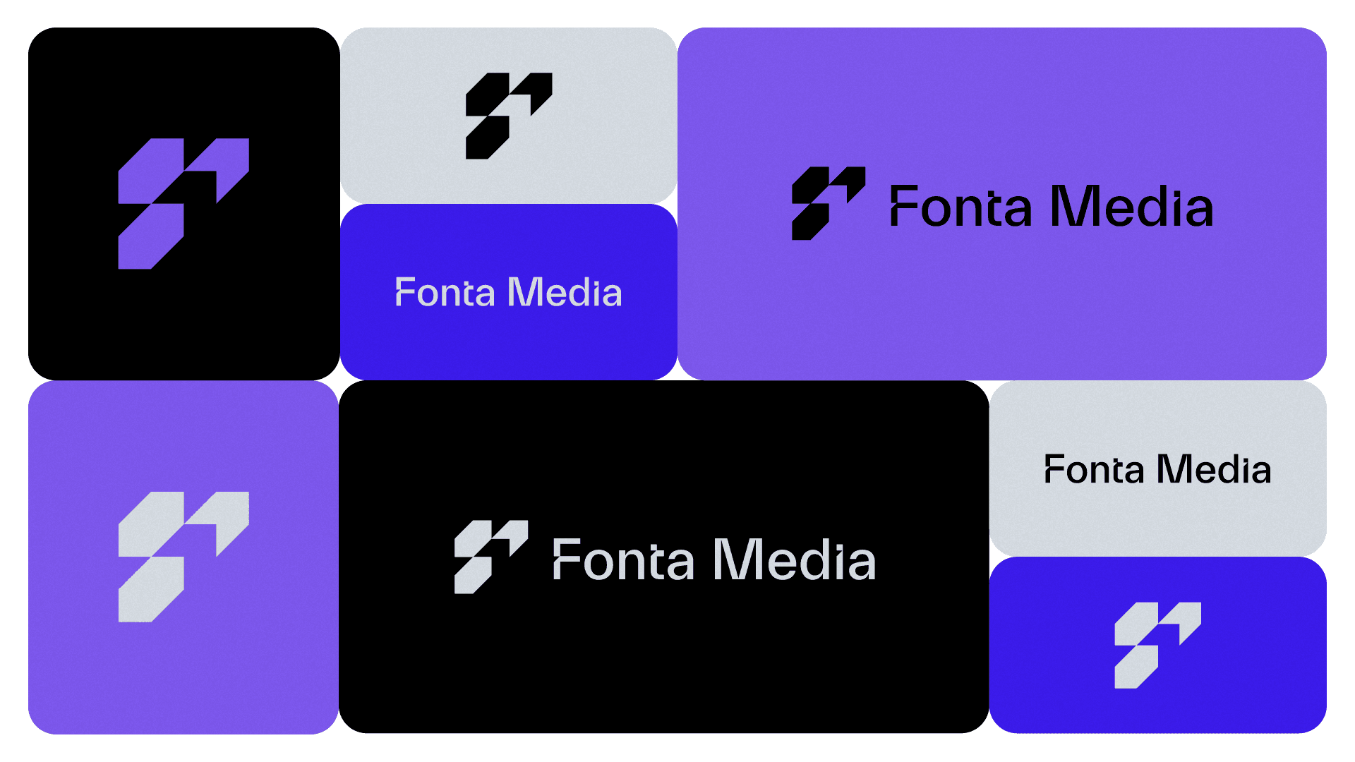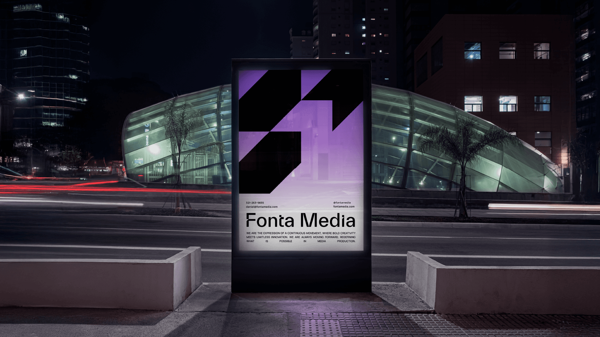 Fonta Media’s color palette uses three distinct shades of purple in gradient, combined with black and ice, creating an identity that balances sophistication, energy and modernity. The choice of typography complements Fonta Media’s identity with clarity and dynamism. This combination of graphic elements, colors and typography reflects the brand’s essence as an adaptable brand committed to transforming each project into an impactful visual work.