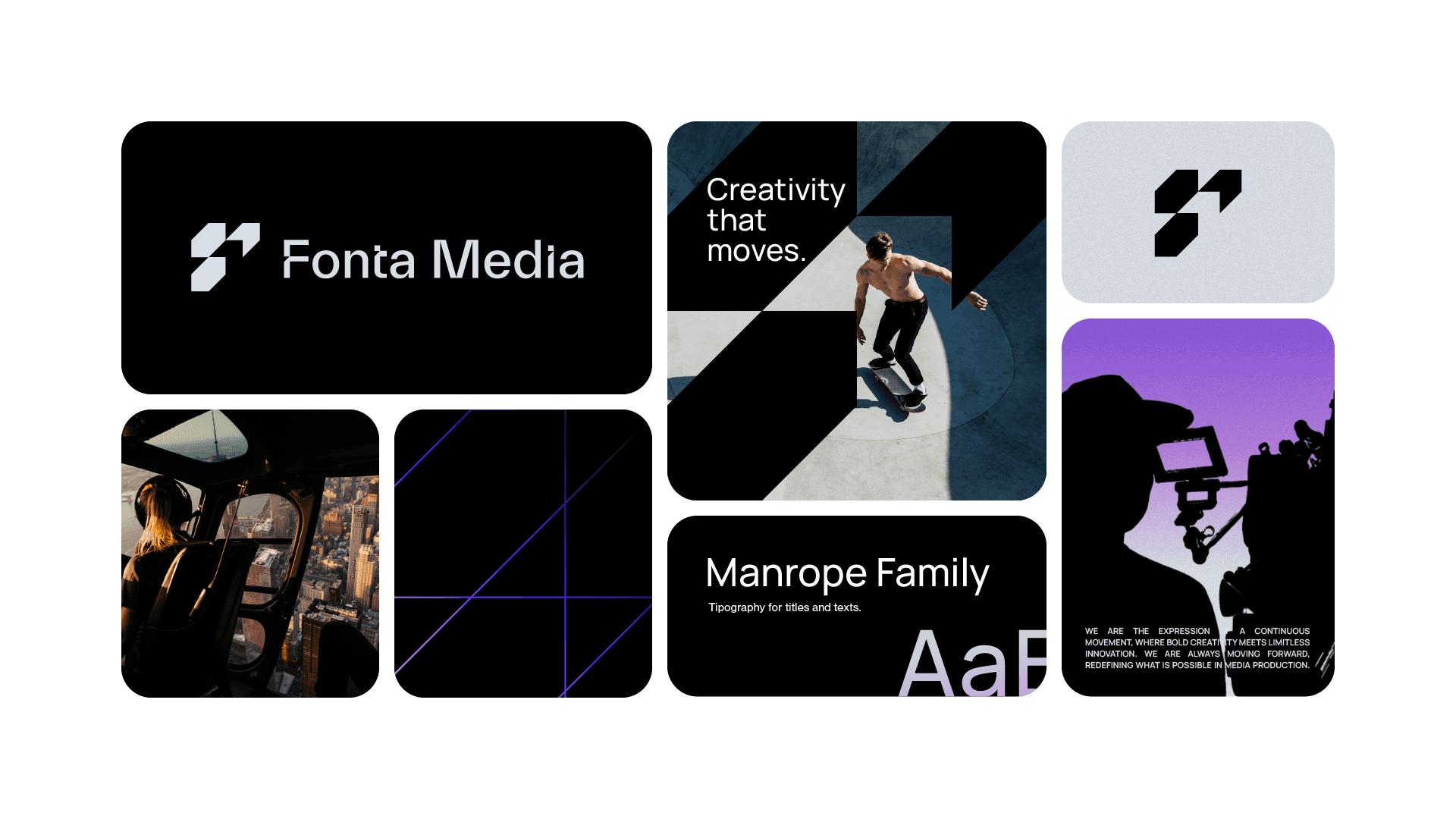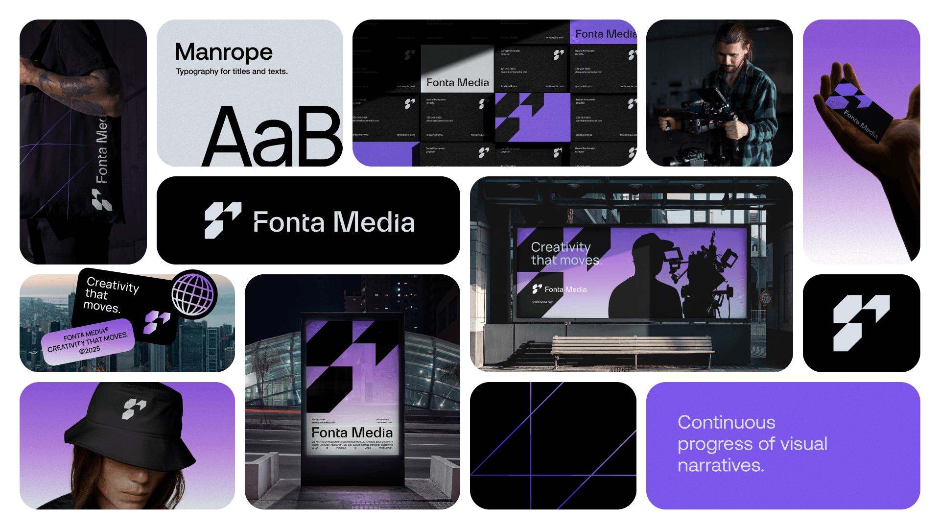 The visual concept created for Fonta Media captures the dynamic essence of the production company’s work, representing its ability to transform ideas into high-quality visual projects. Based on elements that evoke movement and transformation, the concept communicates the brand’s continuous progress and adaptability, ensuring flexibility and impact in each visual communication.