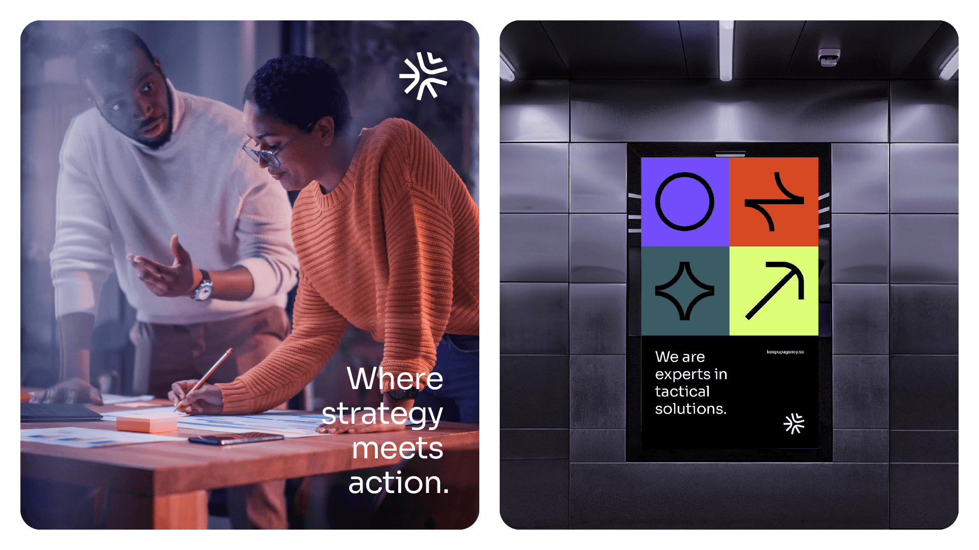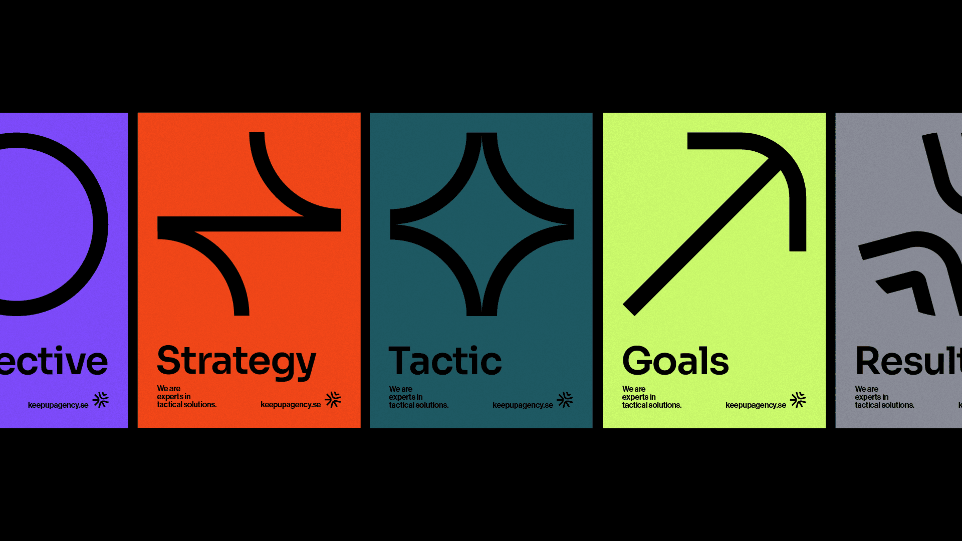 The visual concept of Keep Up Agency is based on fundamental pillars that guide any project developed by the agency: definition of objectives, strategies, tactics and results metrics. This methodical approach is essential to communicating Keep Up's seriousness and professionalism, while the minimalist and modern design aims to ensure a timeless and impactful appearance.