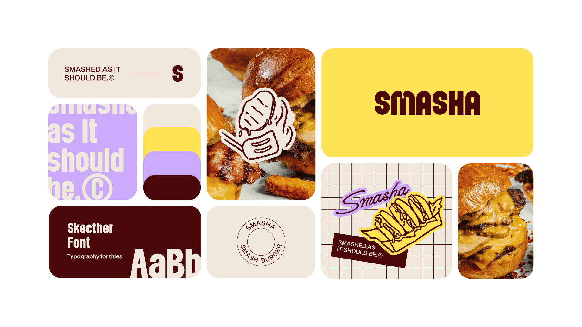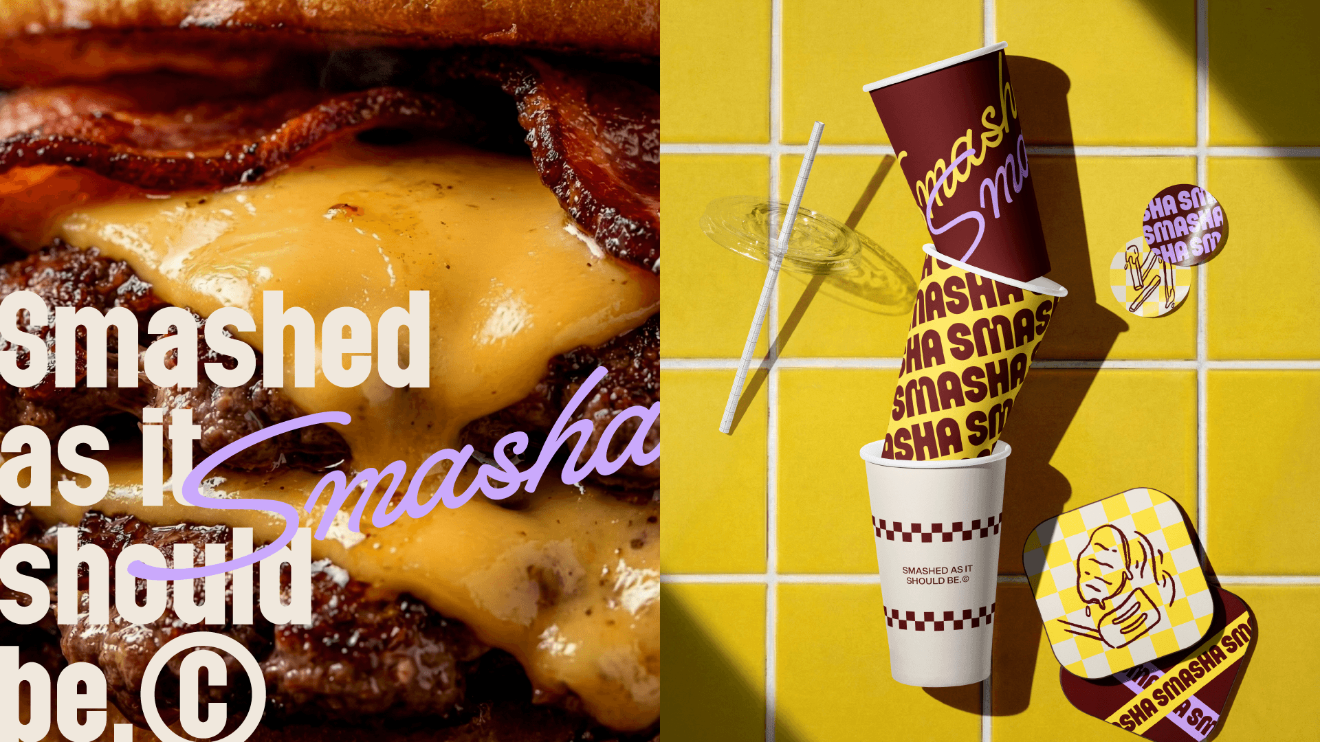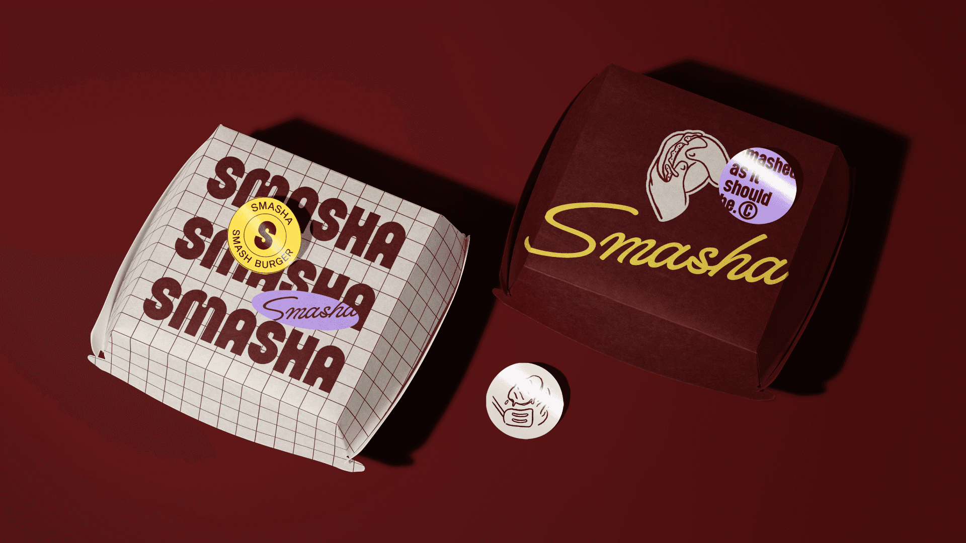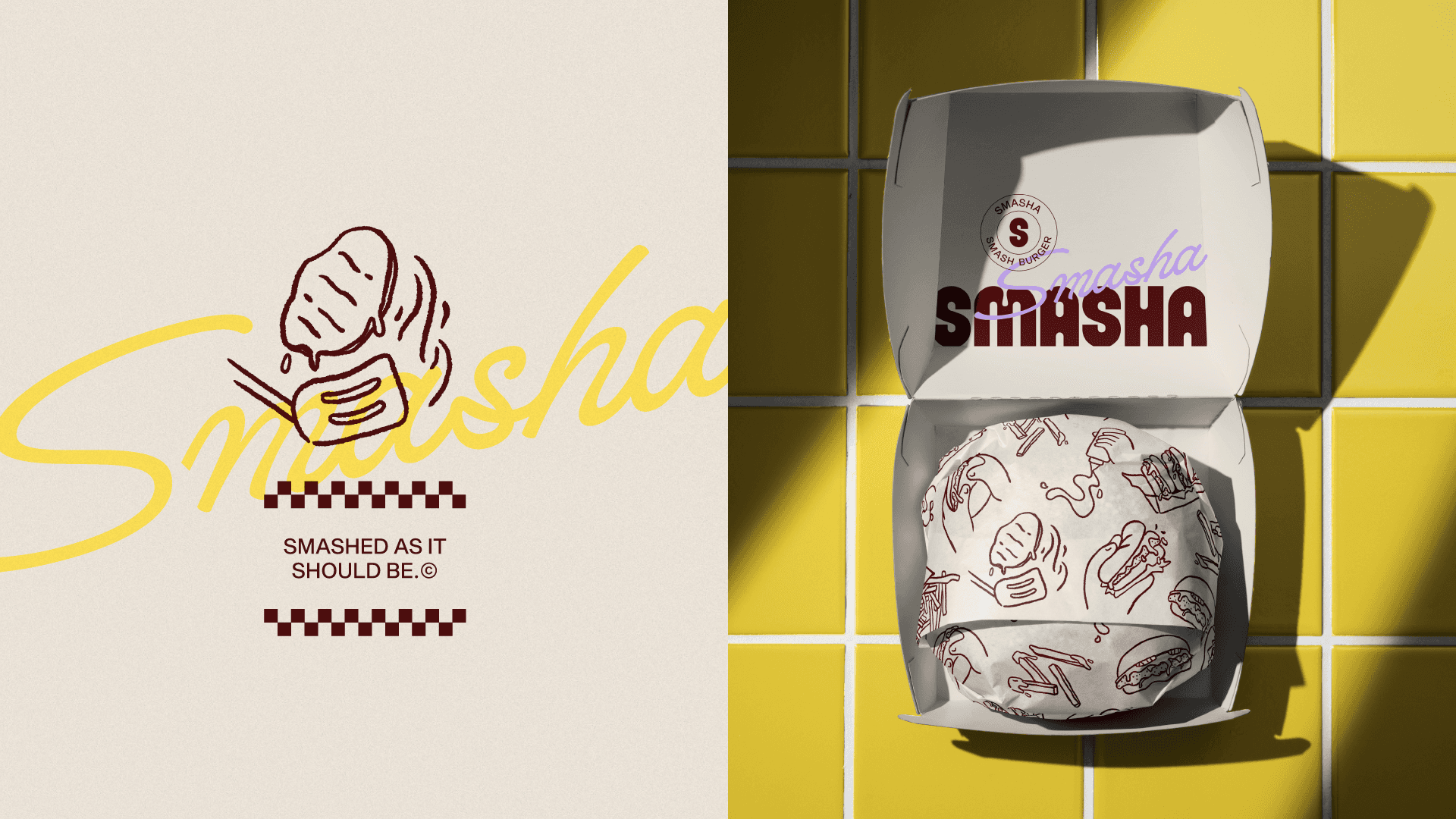 The concept behind SMASHA's visual identity stems from the pressure, heat, and precise timing of the griddle. The smash burger is understood as a process and a gesture, where pressing transforms raw material into texture, crispness, and flavor. This logic guides the entire visual construction, translating strength, precision, and intensity in a direct and conscious way. Controlled curves and well-defined contrasts build a visual system that evokes pressing, melting, and the reaction of food to fire. The identity unfolds in a minimal and contemporary way, balancing rigor and boldness, and creating a striking, flexible visual language aligned with the brand's honest and original essence.