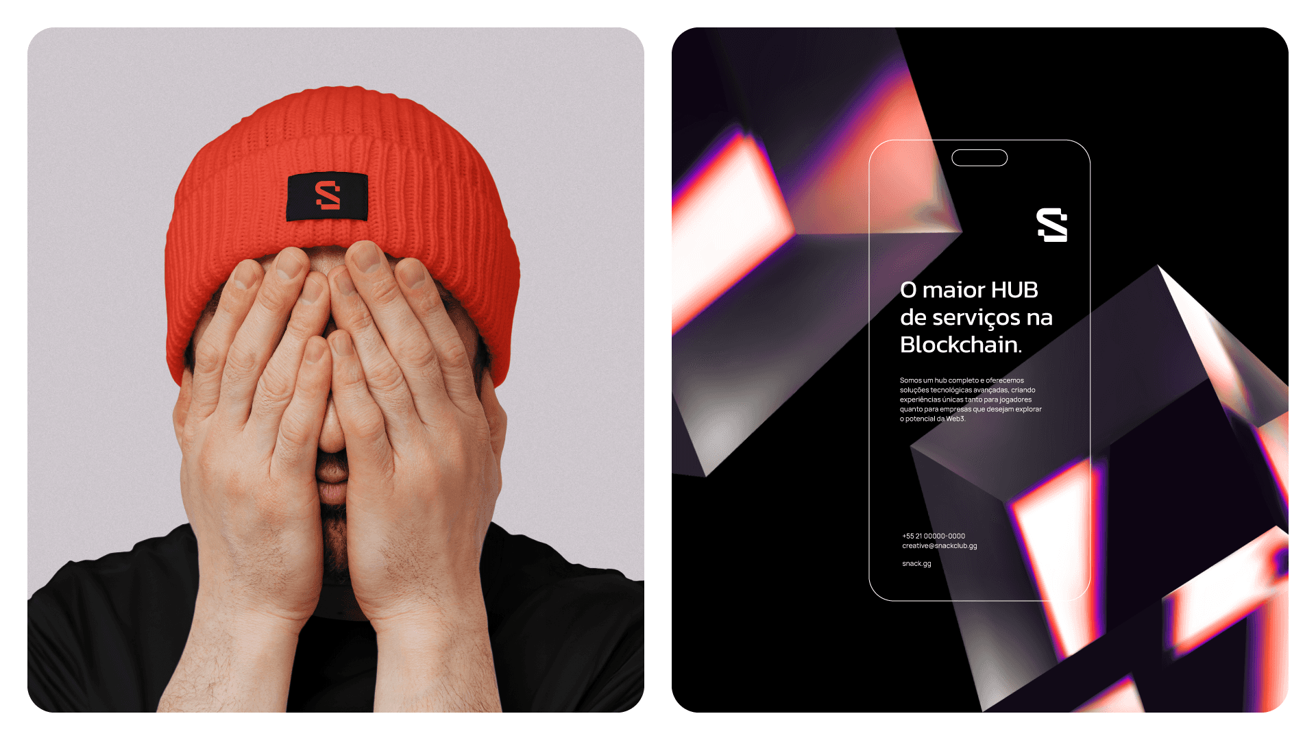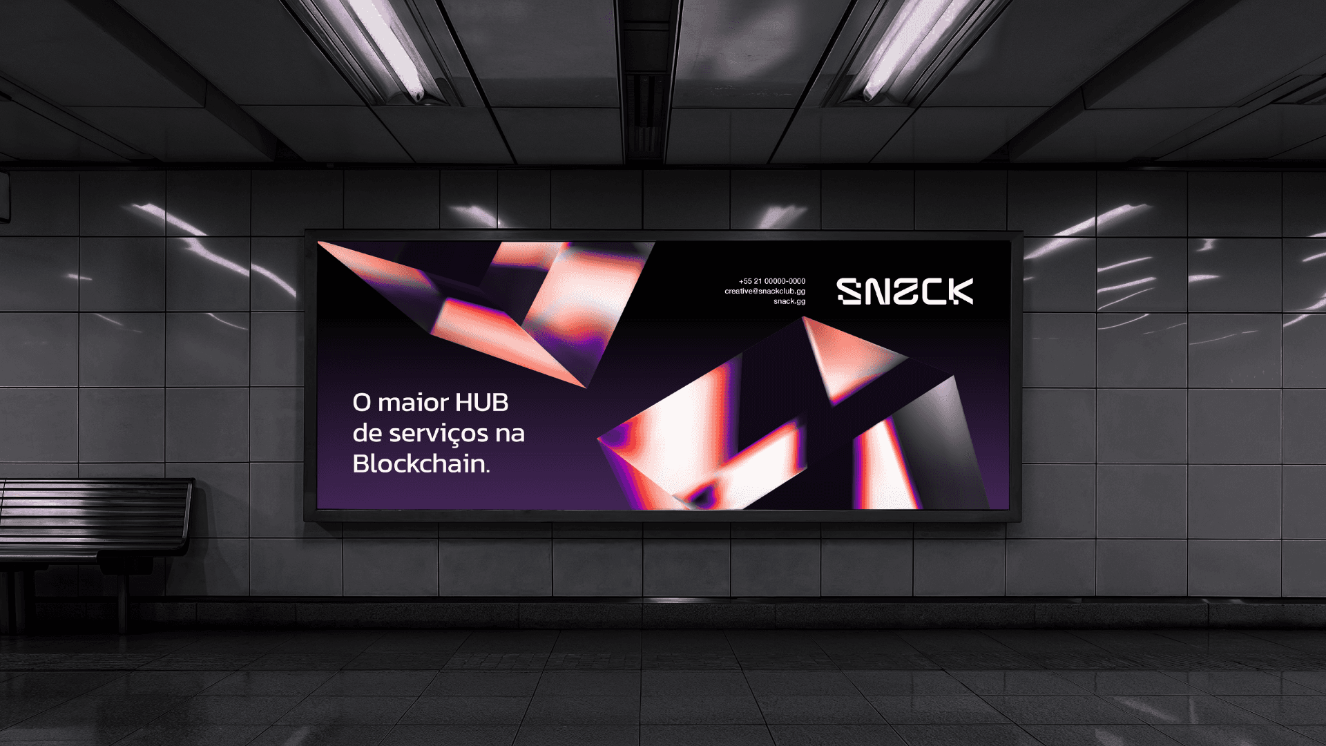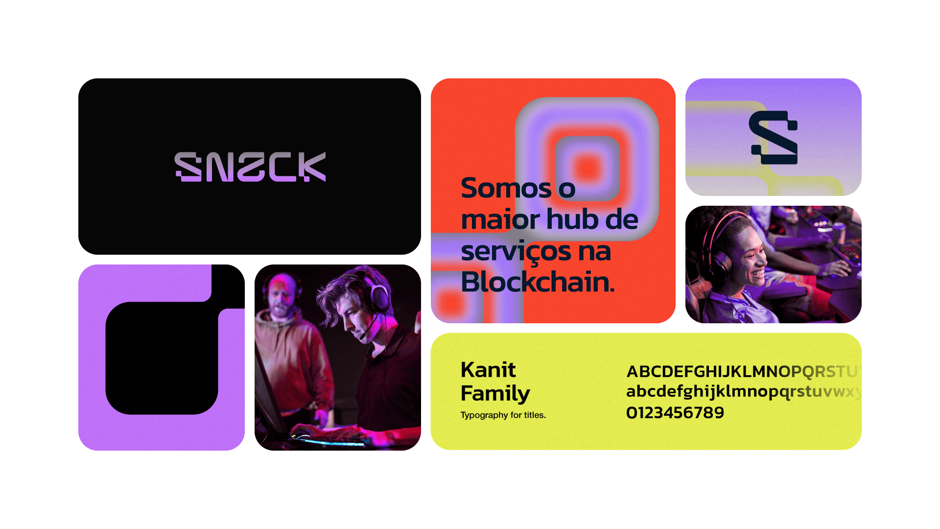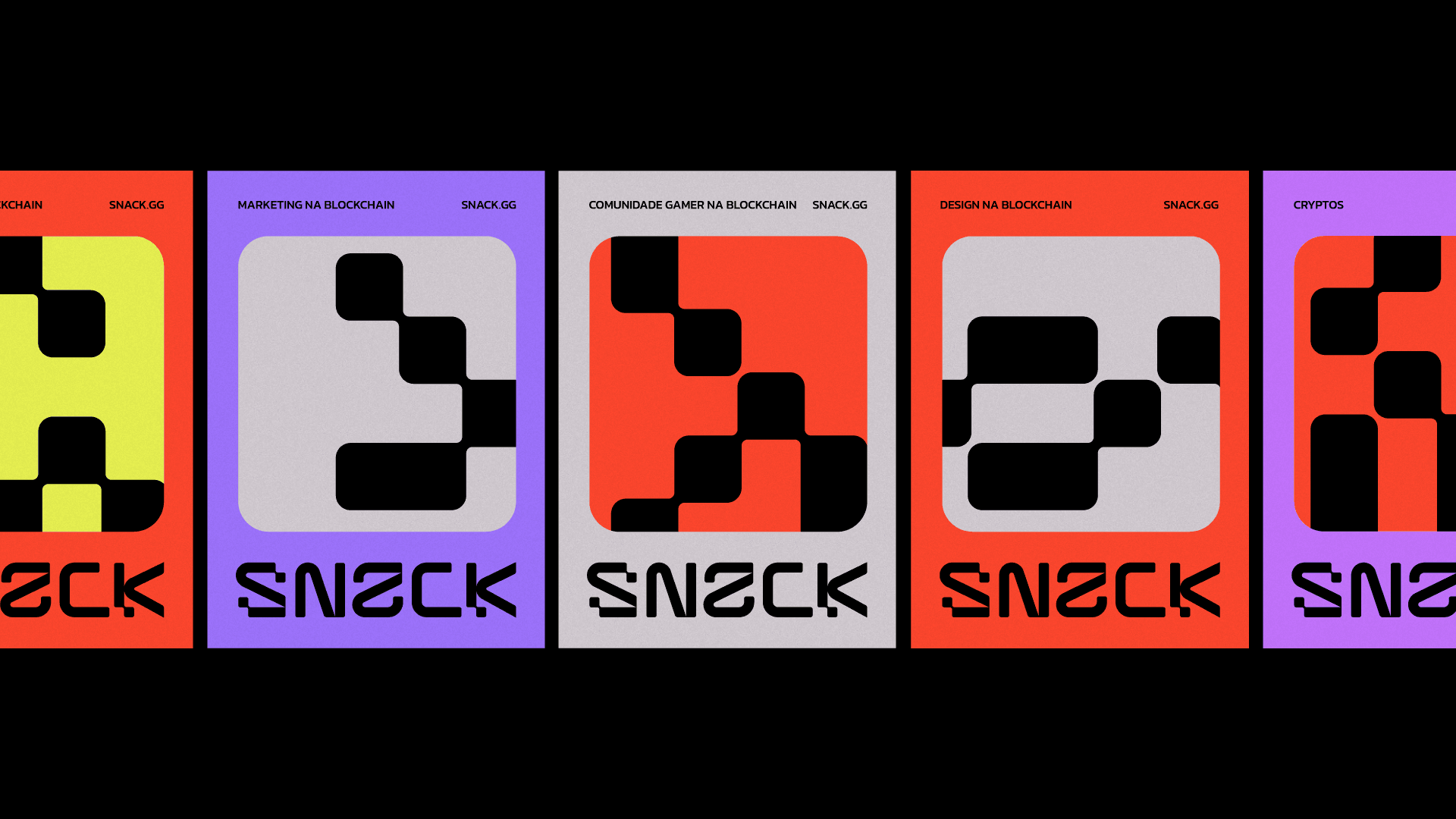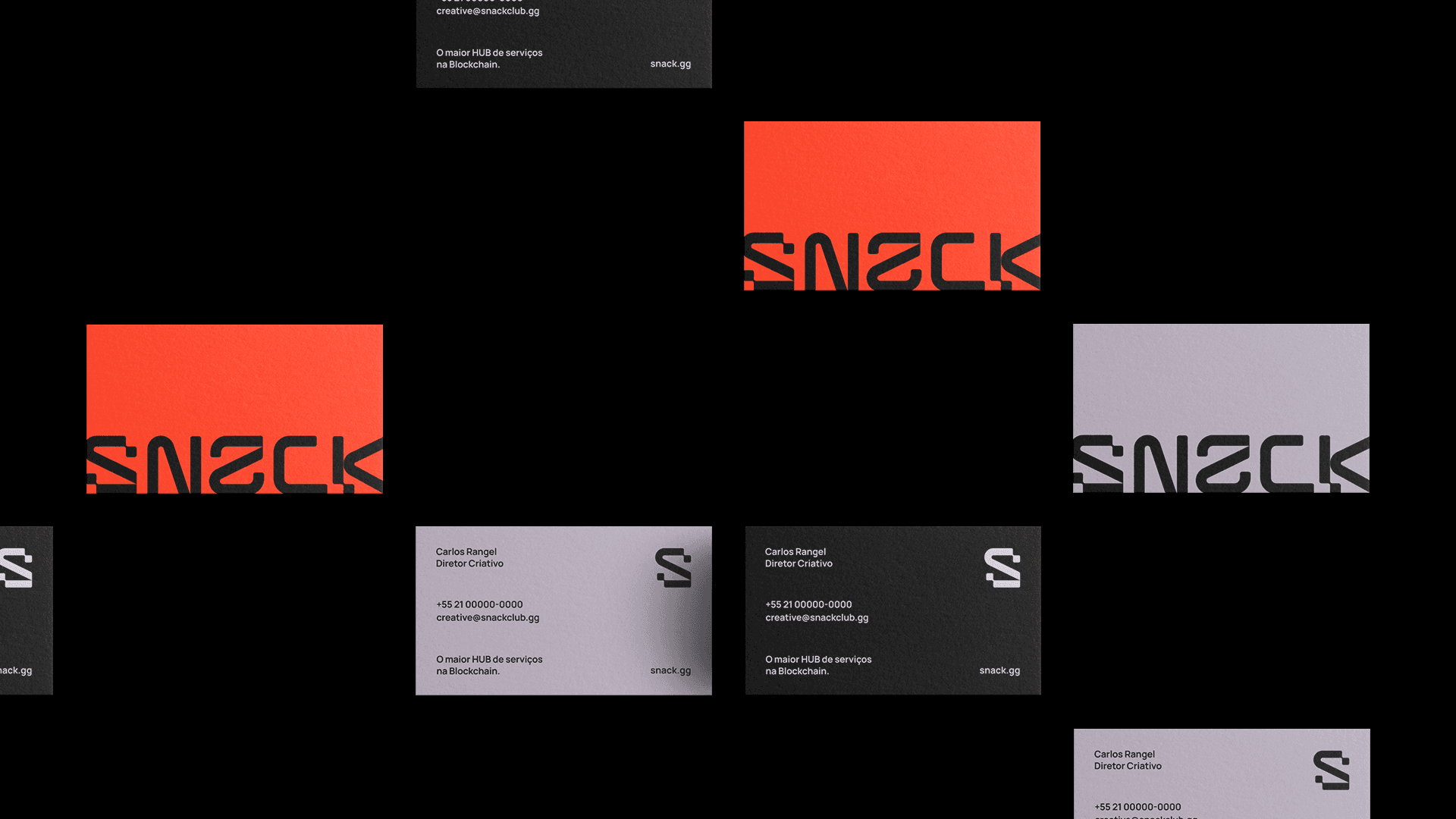 The SNACK logo was developed to symbolize the innovative nature and connection between people within the blockchain. Inspired by the structure of the blockchain itself, the logo features square and rectangular shapes, connected harmoniously, representing data blocks and their connections. The letter “S”, which acts as the brand’s icon, features cuts and shapes inspired by blockchain blocks, reflecting the concept of innovation and connection between communities. The exclusive typography was built based on a modular grid, balancing curved and straight shapes to convey modernity and proximity, but always with the sophistication needed to reflect the seriousness of the services offered by SNACK. These elements guarantee a robust and versatile visual identity, capable of being applied in different contexts and formats, without losing its essence.